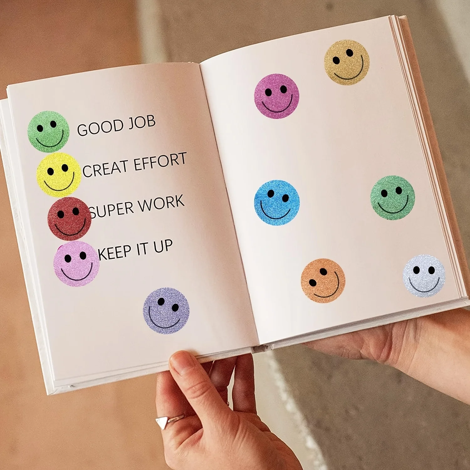 1 Roll of 500 Self-Adhesive Smiley Stickers, 10 Mixed Colors, Suitable for Reward Stickers, Classroom Supplies, Party Gifts, Etc