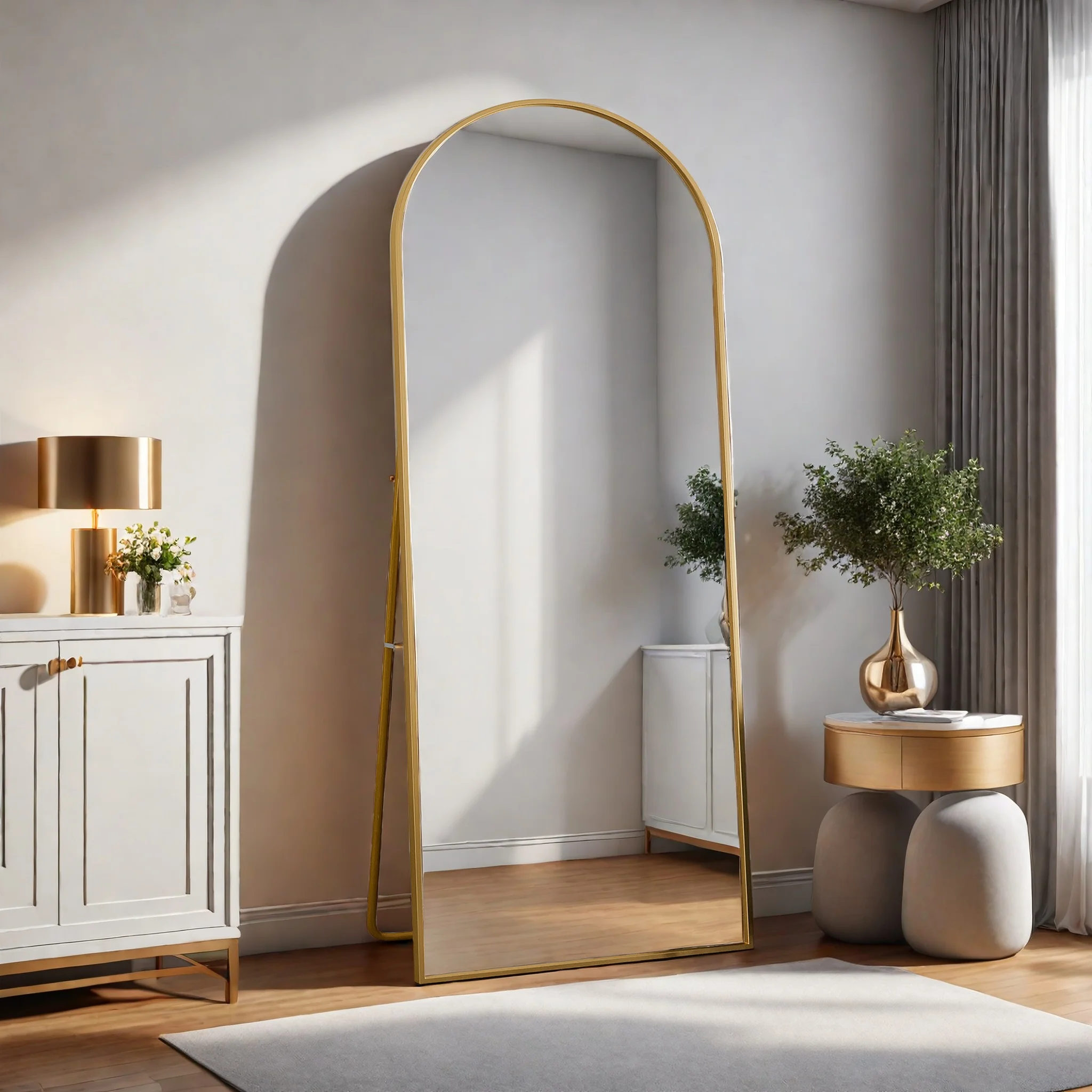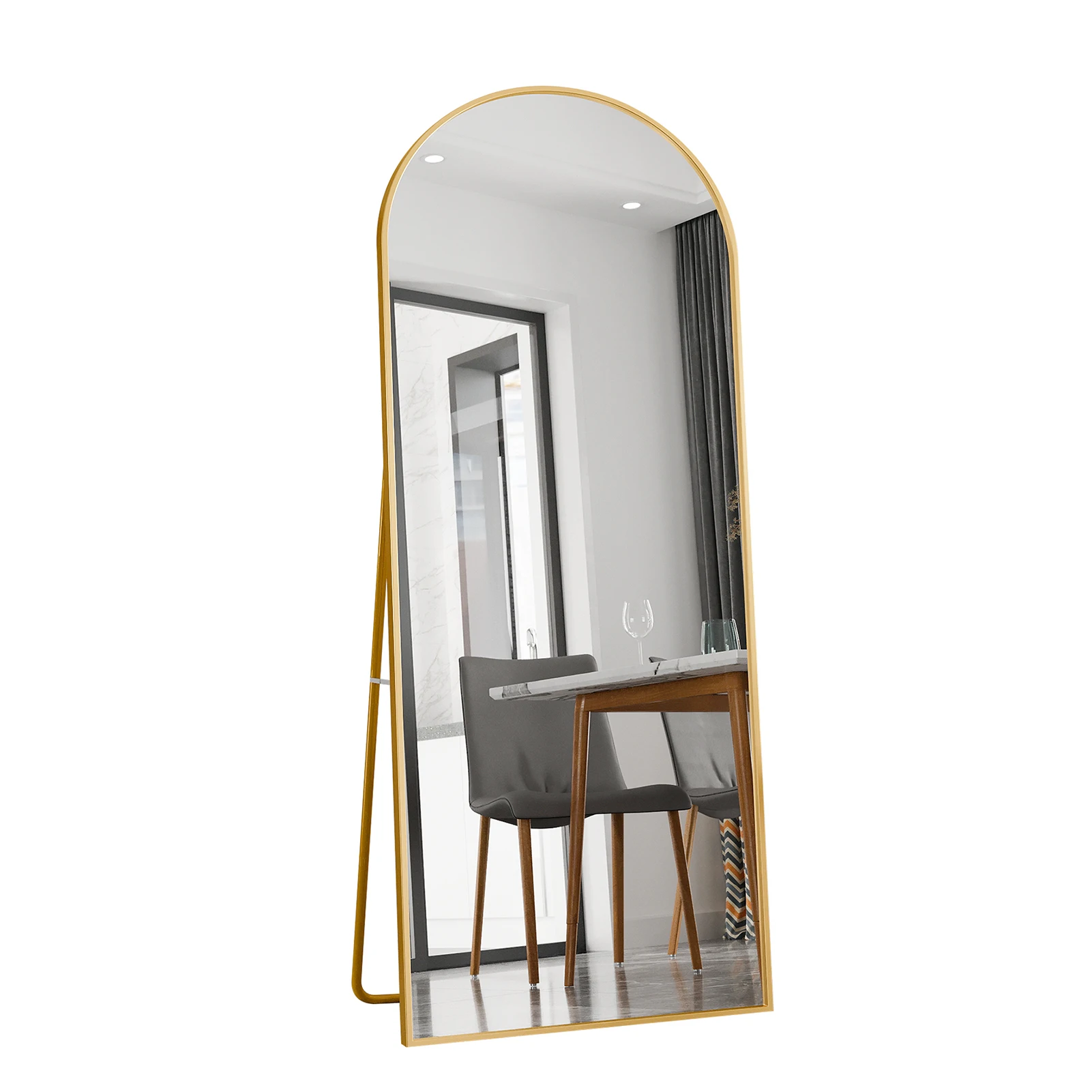Luxury golden frame, the highest elegance: This floor make-up mirror with a golden aluminum alloy frame, the gold itself has luxury and valuable properties, with fine aluminum alloy material, not only the full texture, but also add a modern sense of fashion for the mirror. Whether in a minimalist bedroom or a beautifully furnished wardrobe, it can instantly become the visual focus of the room and enhance the style and taste of the whole home.