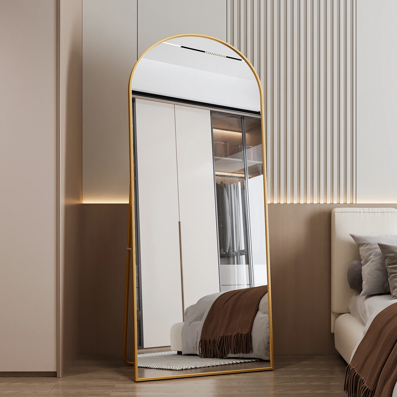 180x80 cm Full Body Mirror Tempered Glass Aluminum Alloy Frame Stand Mirror Full Body Mirror Standing Mirror Gold