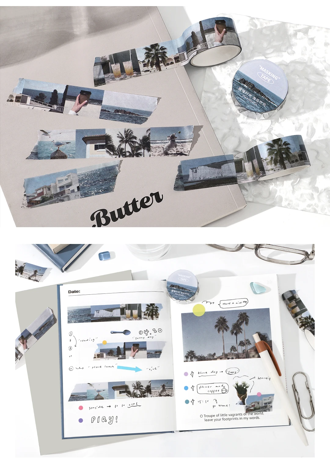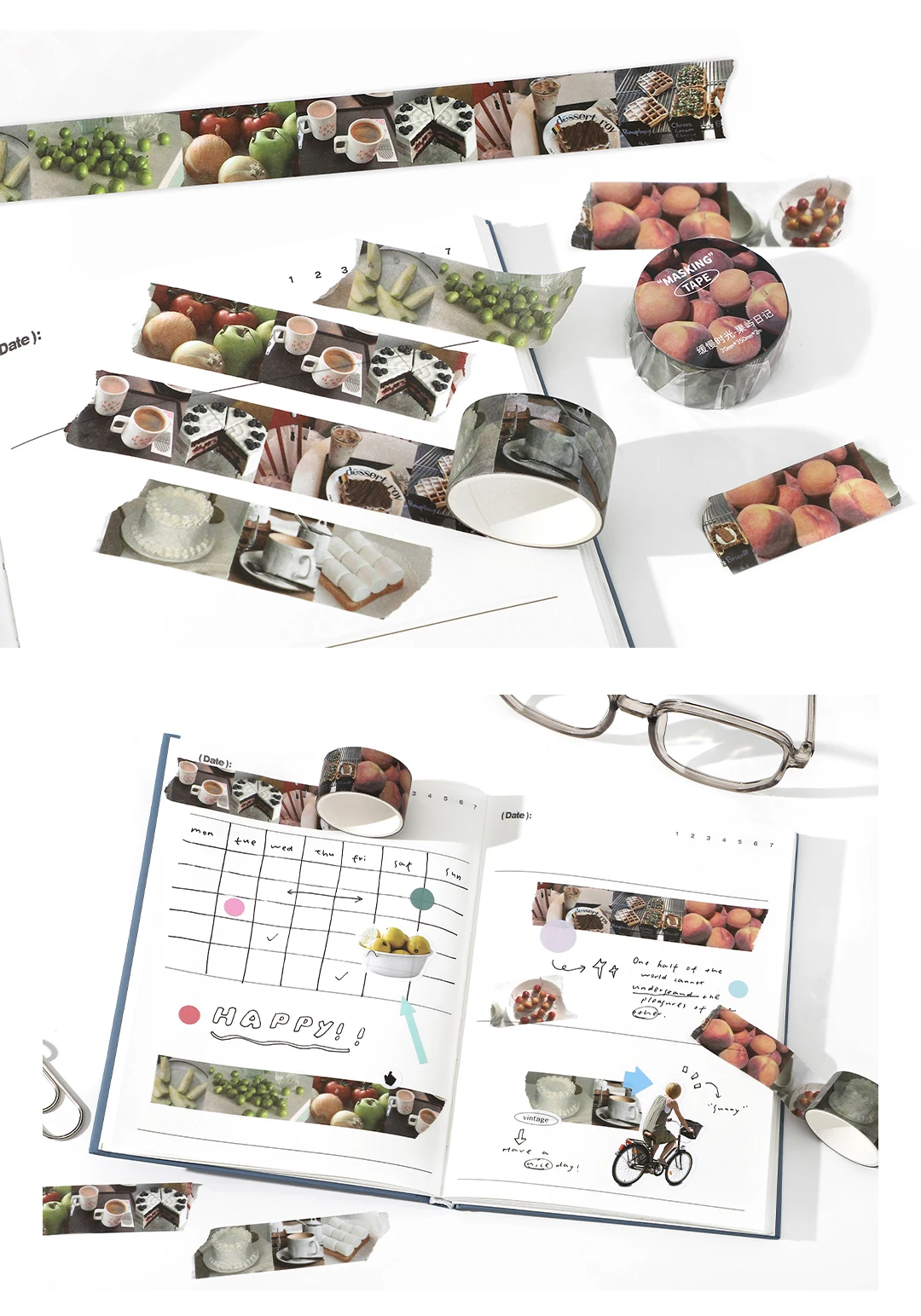 2 Roll Washi Paper Tape Ins Style Daily Life Sharing Pattern Diary Tape Creative Phone Case Storage Box Photo Decorative