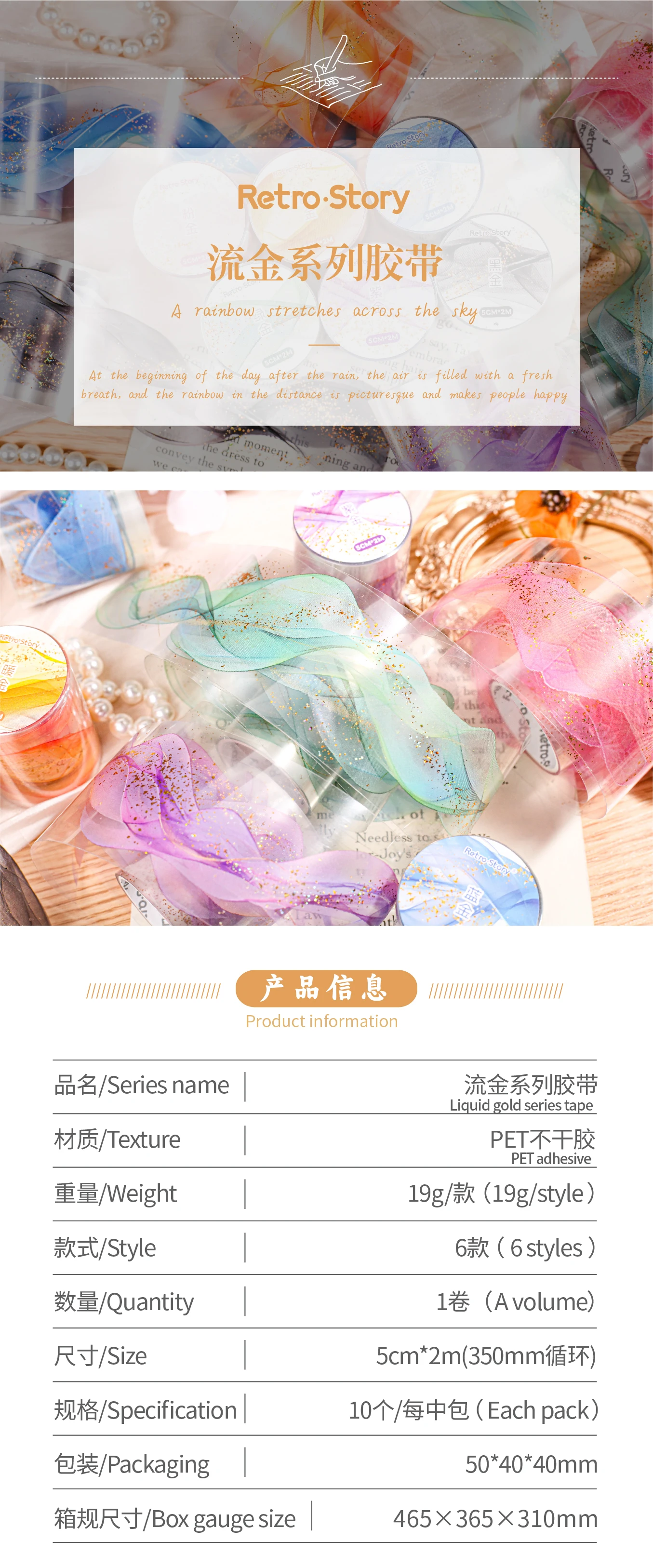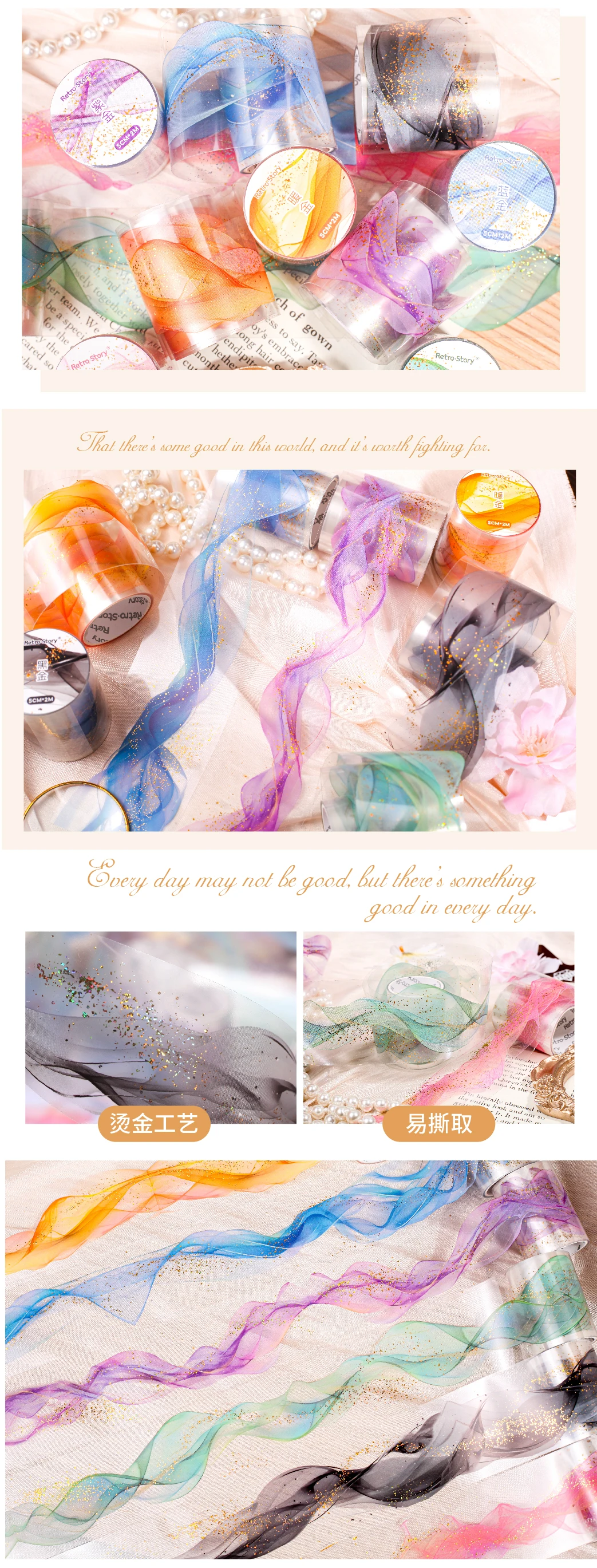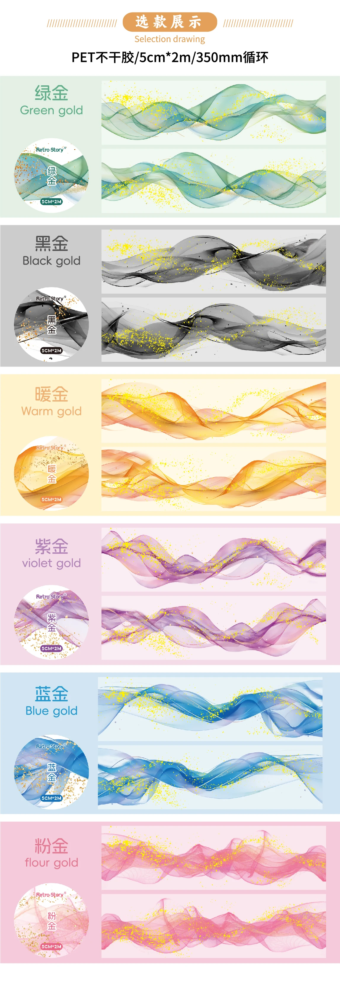 200 cm PET Washi Tape Decorative Adhesive Tapes School Journal Supplies Gold Foil Scrapbooking Japanese Stationery Masking Tapes