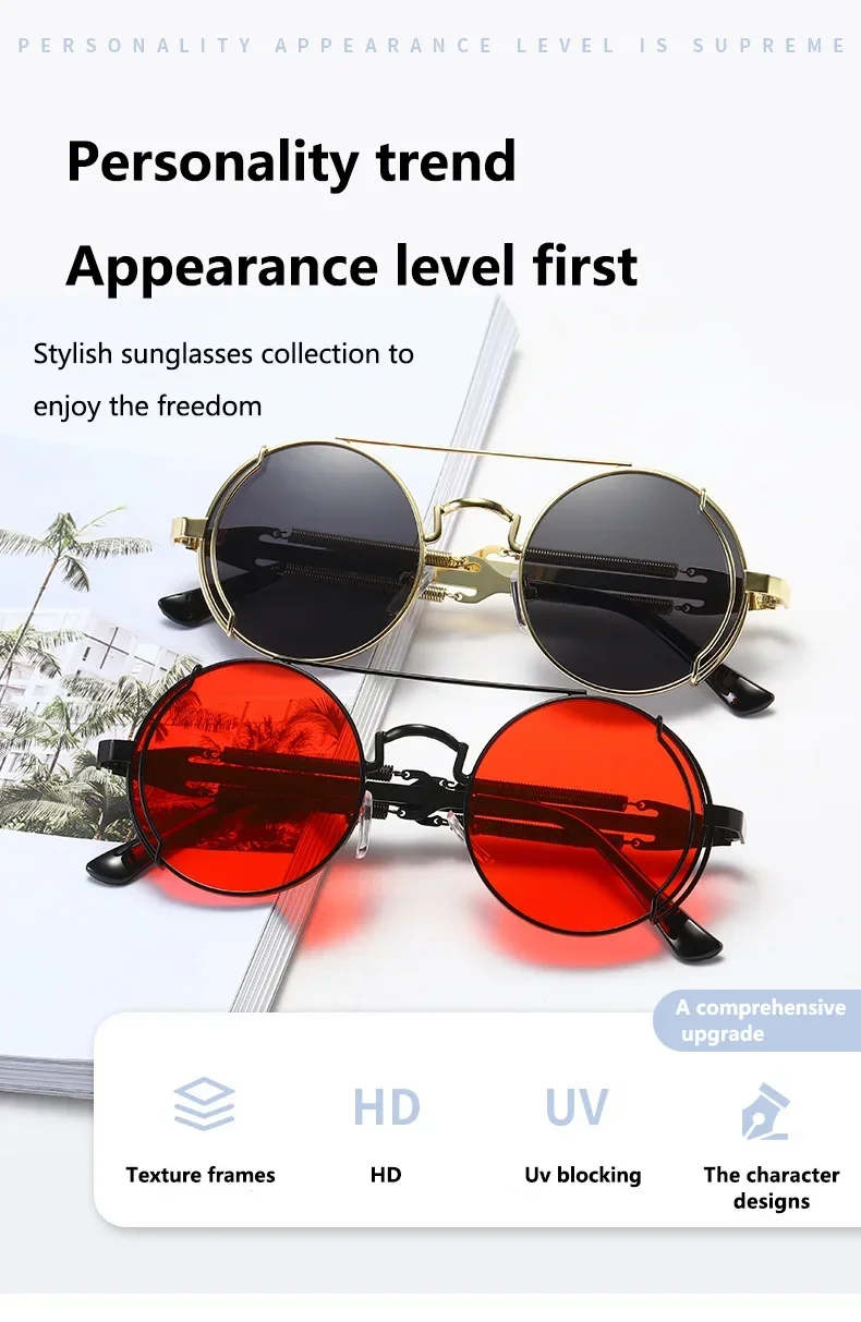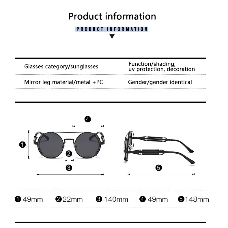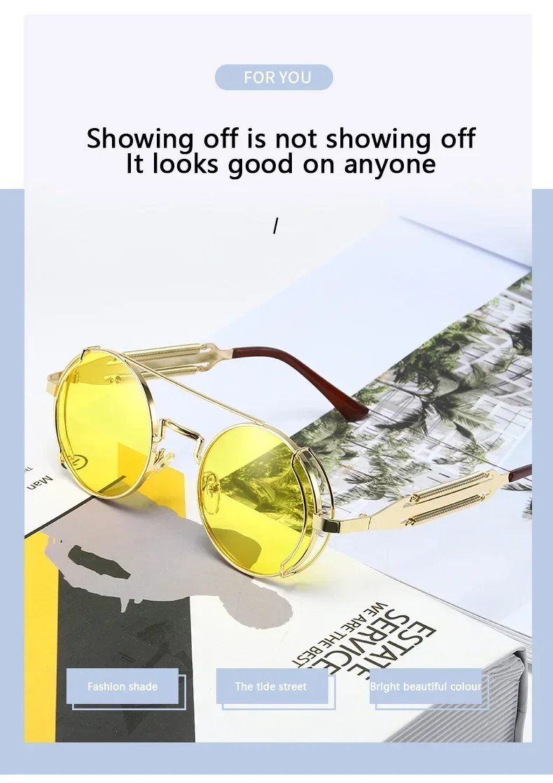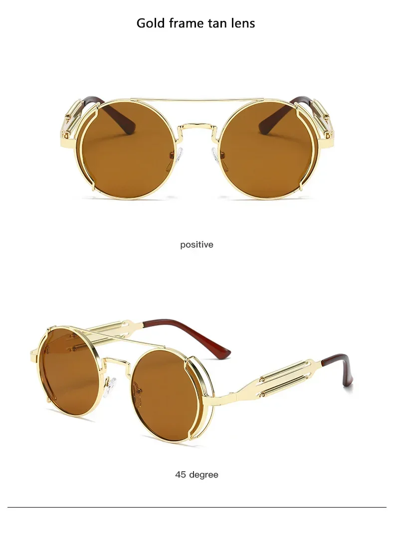 2022 New Metal Steampunk Sunglasses Men Women Fashion Round Glasses Bran age Sun Glasses High Quality Oculos de sol