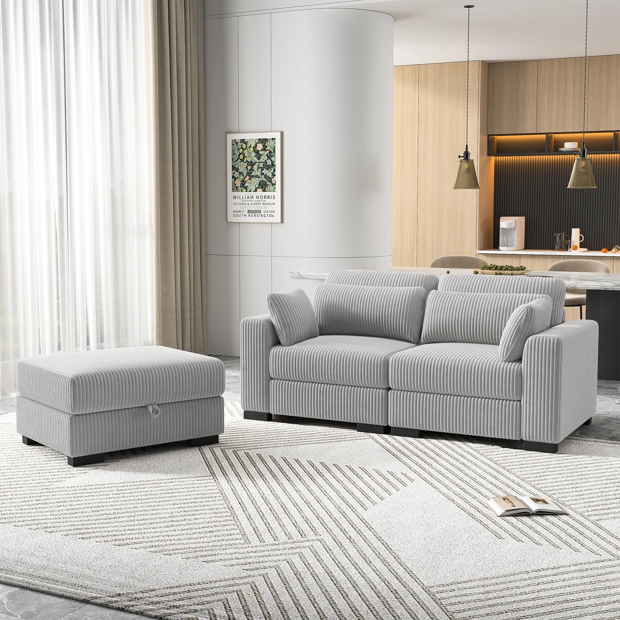 Anajqaqia Modular Sofa, Living Room Sofas, Velvet Sofa with Wide Armrests, Footstool, Various Combinations, Velvet, Grey