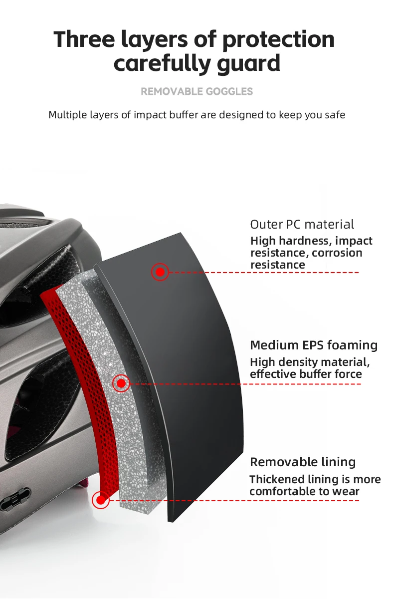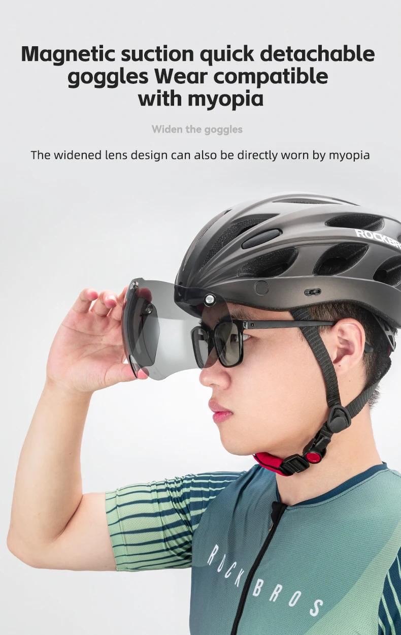 ROCKBROS Cycling Helmet With Goggles Visor Brim Adults Safety Riding Bike Helmet Breathable Ultralight MTB Road Bicycle Helmet