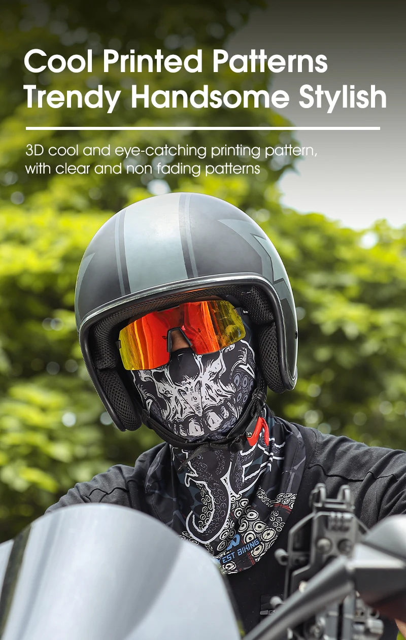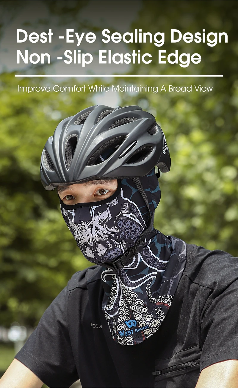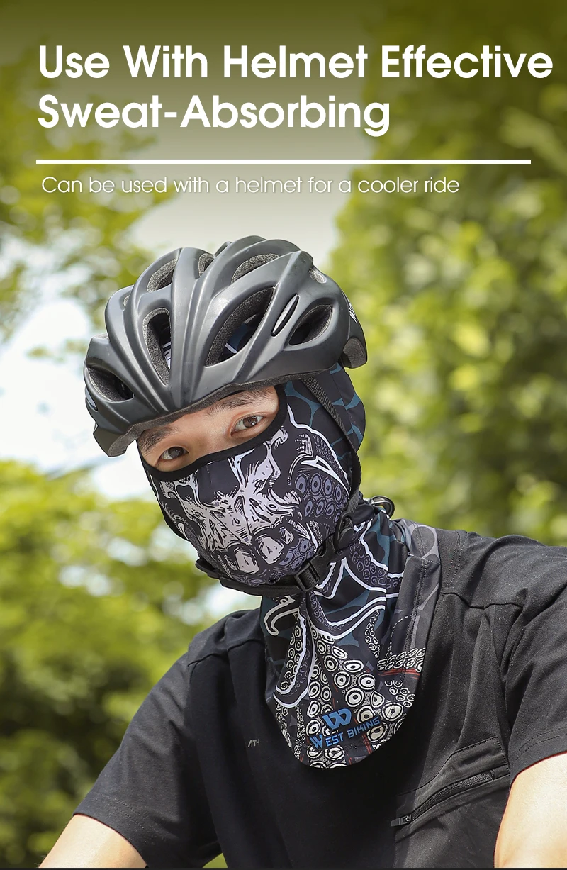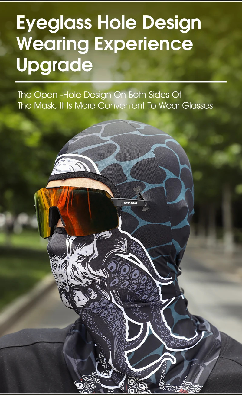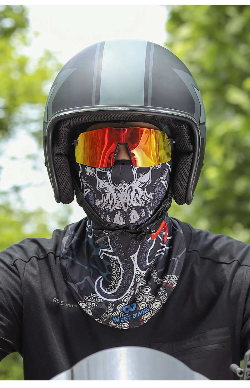 WEST BIKING 3D Skull Pattern Motorcycle Balaclava Summer UV Protection Cycing Caps For Men MTB Road Bike Full Face Ice Silk Mask