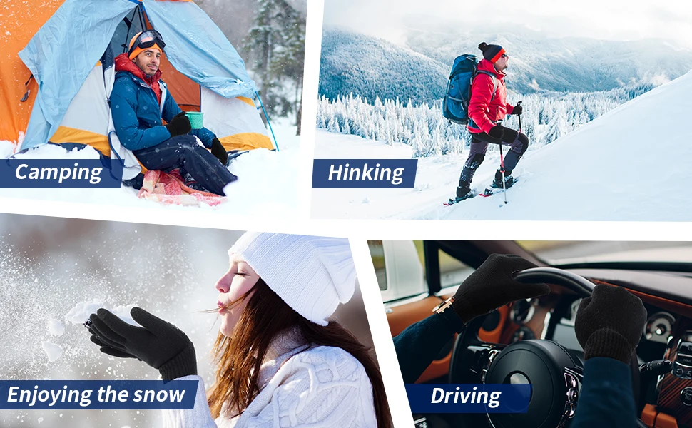 3.Warm Lining and Comfortable: Made of soft napping wool the inner lining, the gloves are extremely comfortable and warm. Thickened elastic wrist keeps the glove closed around your skin and keeps the snow or wind out in winter. Also with the stretchy snug fit, you can type a text just as fast as you could without gloves. perfect for driving, motorcycle, running, cycling, riding, biking, gym, work, camping, hiking or any winter outdoor activities and daily use.