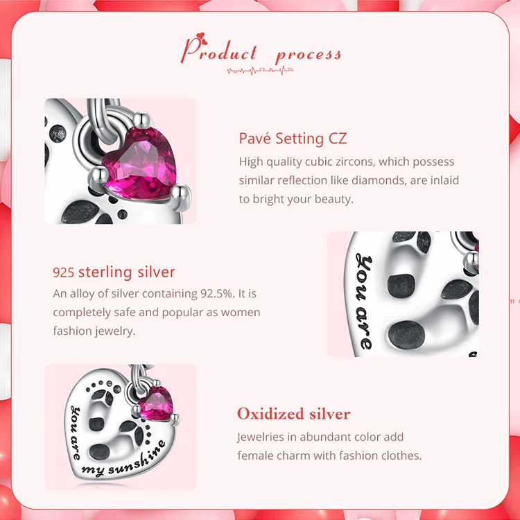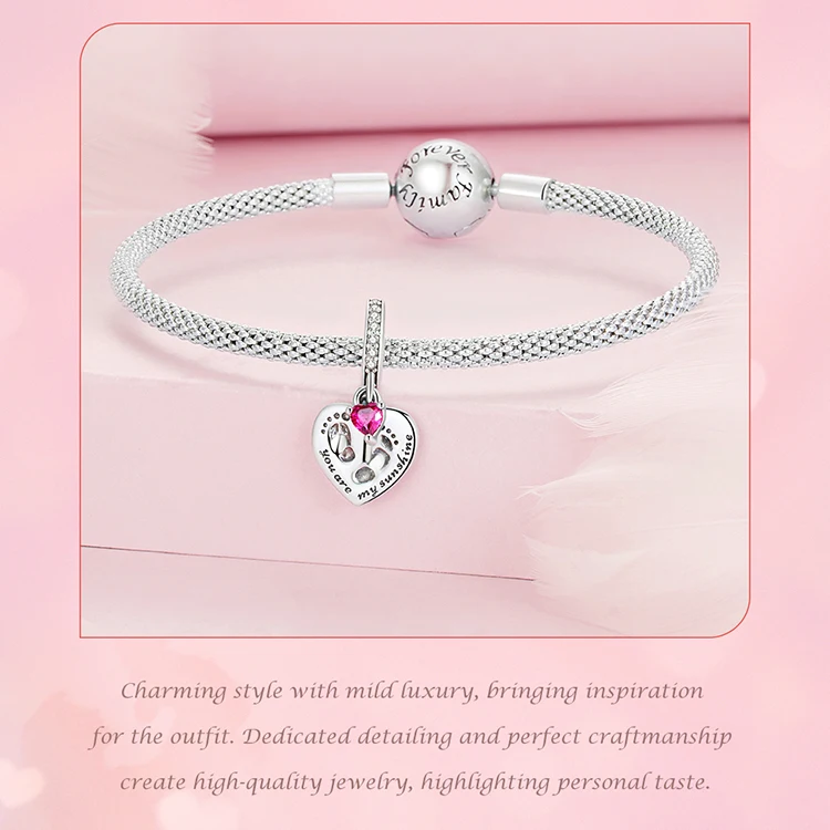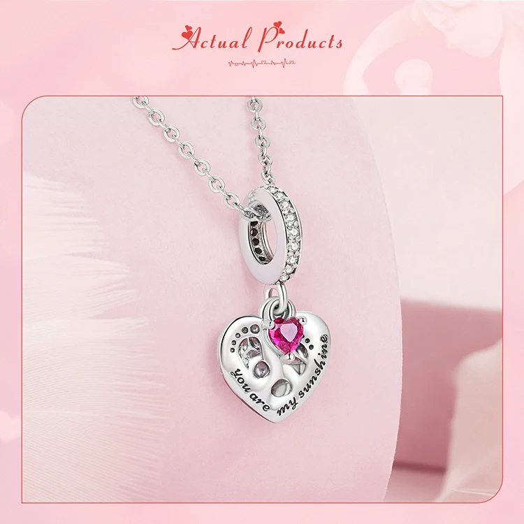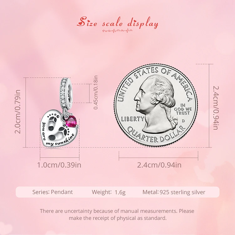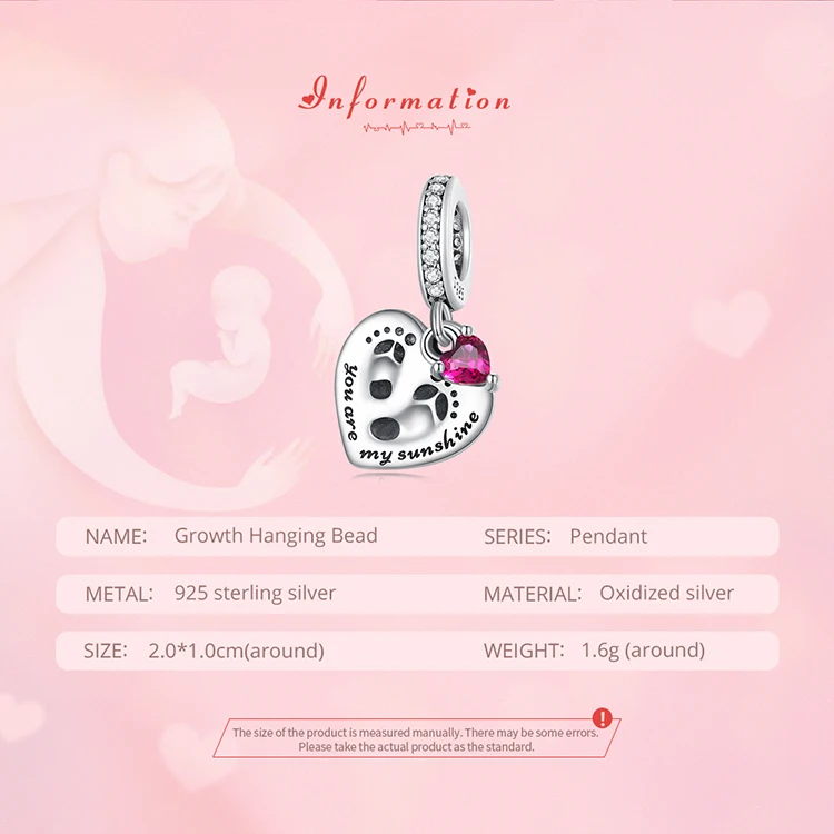 ❤ [Growth Hanging Bead]:The two sides of the heart-shaped pendant are a pair of small footprints which the edge inscription "you are my sunshine" and a pair of beautiful wings, which is full of strong family affection.