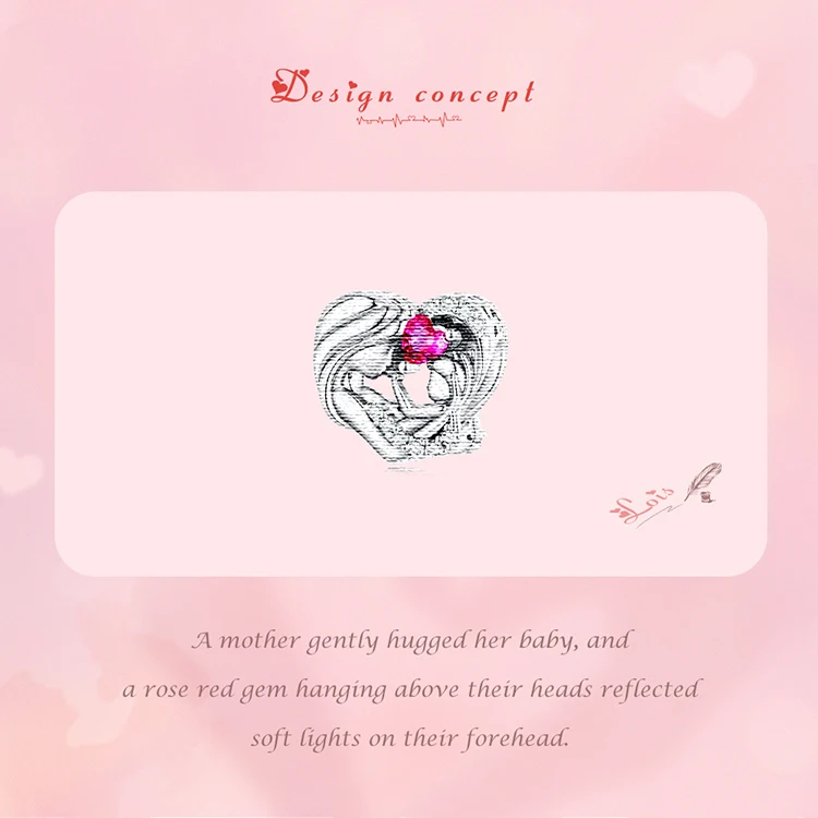 ❤ [Mother-child Affinity Bead]:A mother gently hugged her baby, and a rose red gem hanging above their heads reflected soft lights on their forehead.