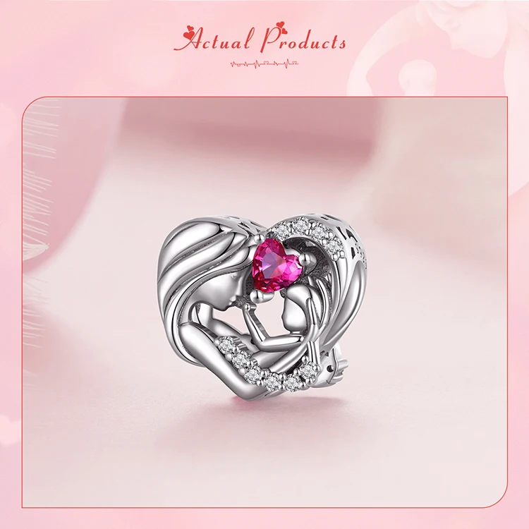 WOSTU 925 Sterling Silver Heart Shape Charms Growth Hanging Bead Red CZ Love Affinity Pendant For Original Jewelry Thanksgiving